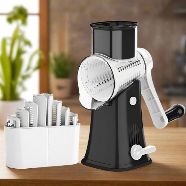 Équipé de 5 lames spécialisées (tranchage 2mm, julienne fine 2x2mm, julienne large 4x4mm, broyage et tissage), le GrateFlex™ vous permet de préparer n'importe quel légume selon vos besoins. Préparez salades, gratins et plats sains en un temps record !